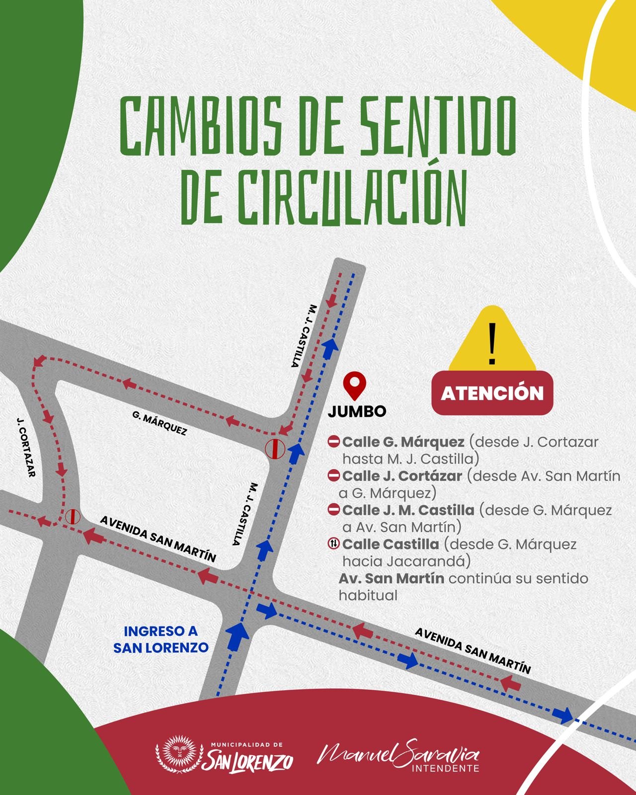 Es importante aclarar que, quienes deseen regresar a San Lorenzo, deberán hacerlo por la rotonda ubicada al ingreso del municipio y continuar por avenida San Martín.